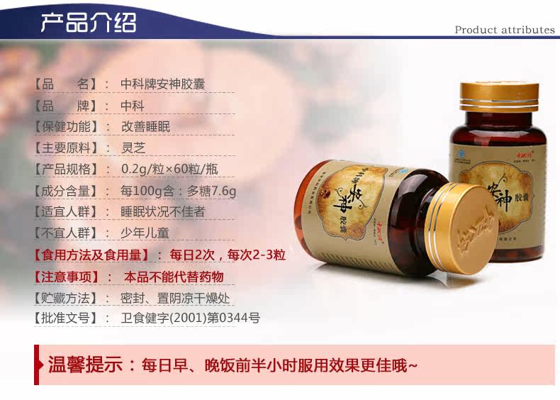【改善睡眠】中科牌安神胶囊 0.2g/粒*60粒