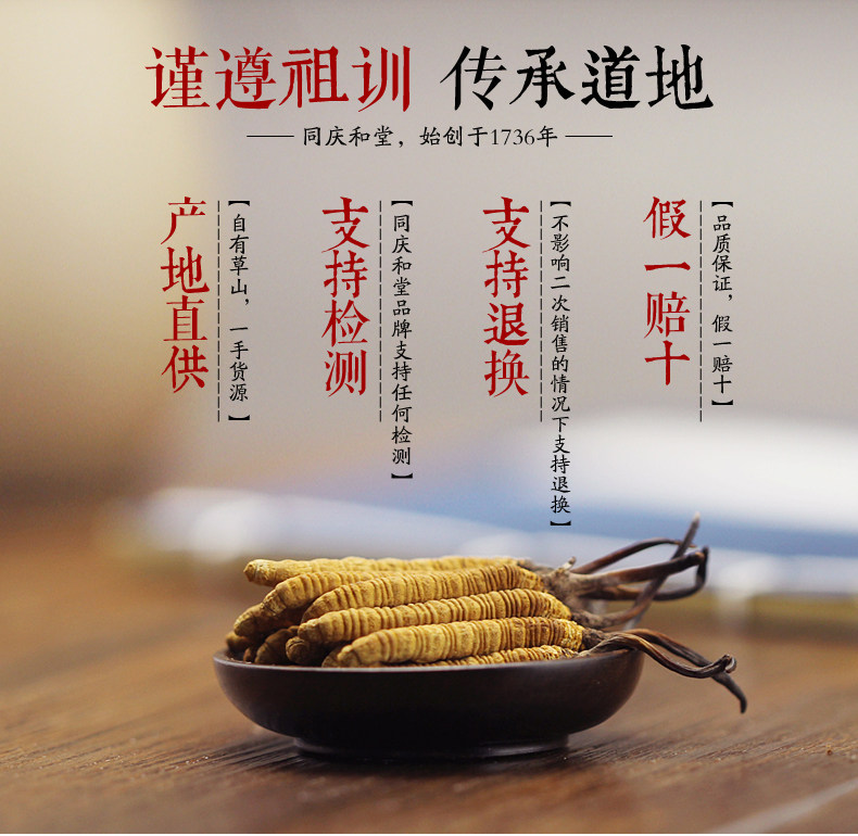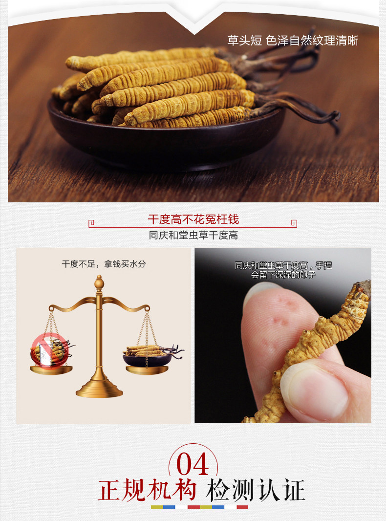 同庆和堂 高海拔野生冬虫夏草4根/克10g 精挑品质