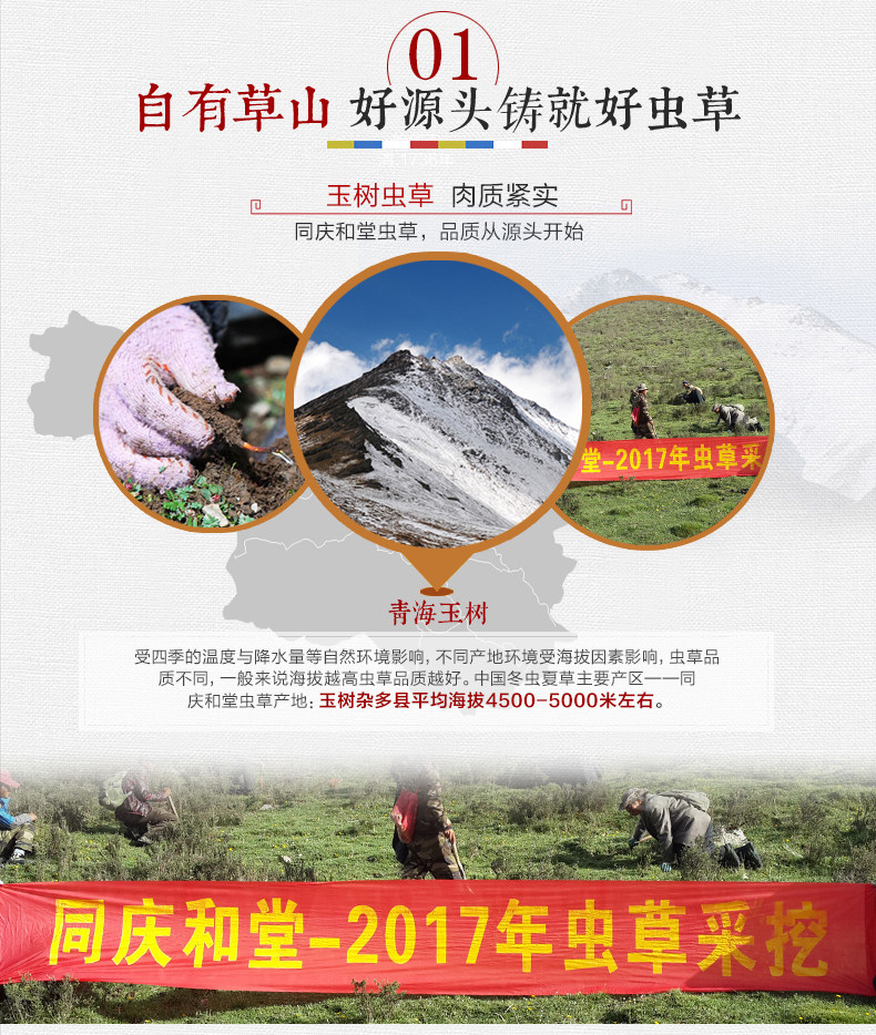 【满10克送1克】同庆和堂冬虫夏草玉树高海拔野生精挑品质3根 1克