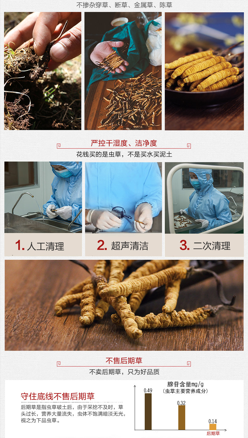 【满10送1】同庆和堂 青海玉树高海拔野生精挑冬虫夏草二号断草