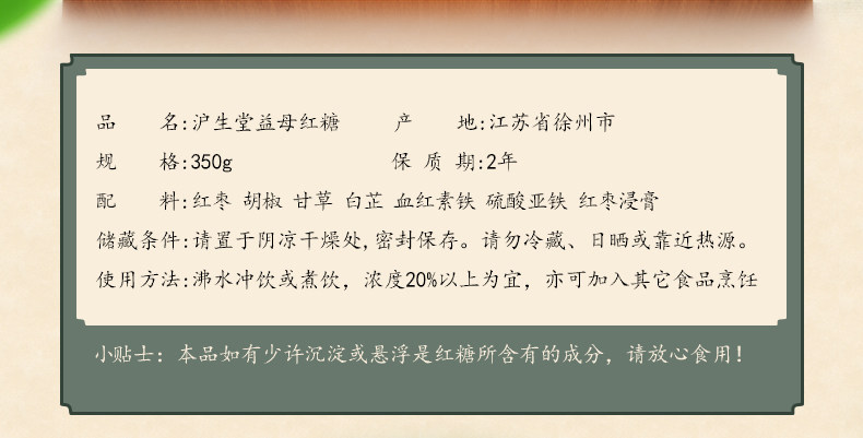 沪生堂红糖益母红糖老红糖土红糖甜而不腻手工红糖350g*2袋装