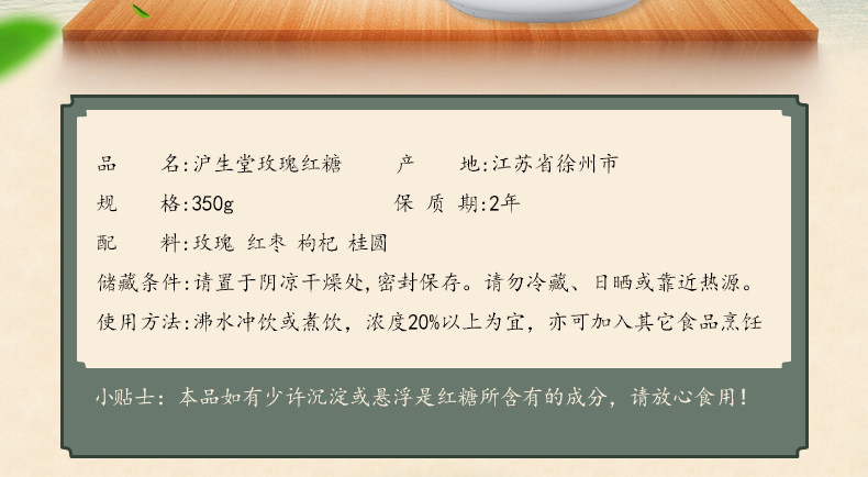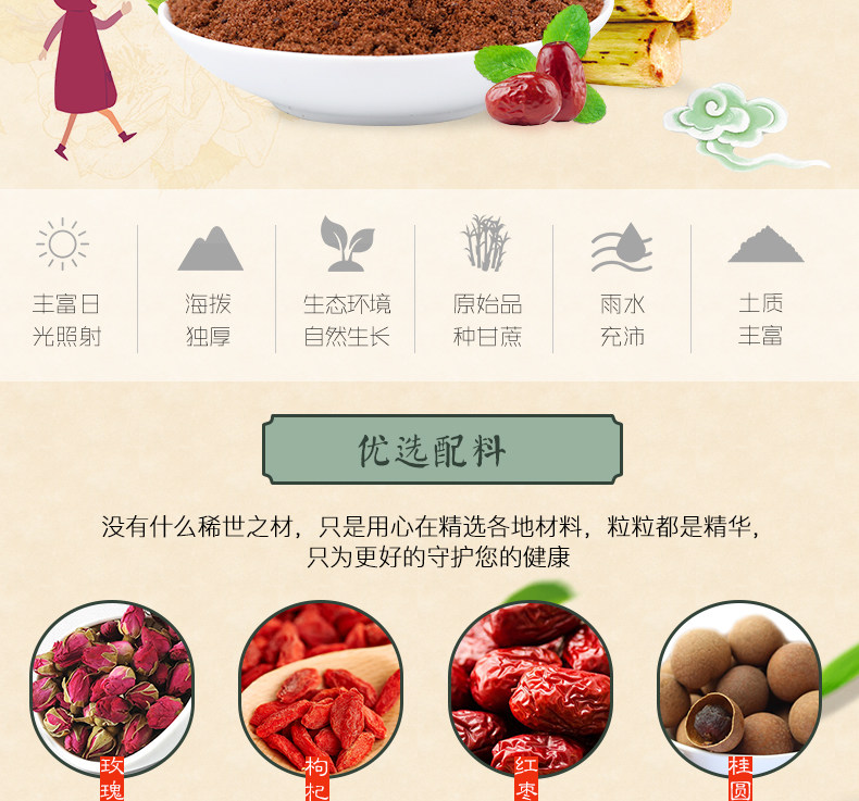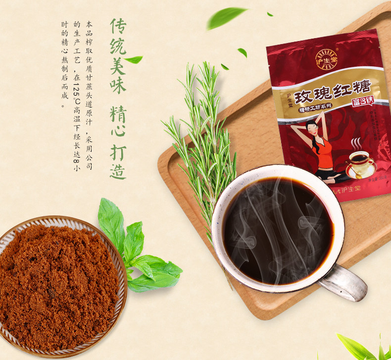 沪生堂红糖块 女生玫瑰四物贞黑糖 手工熬制云南甘蔗老糖