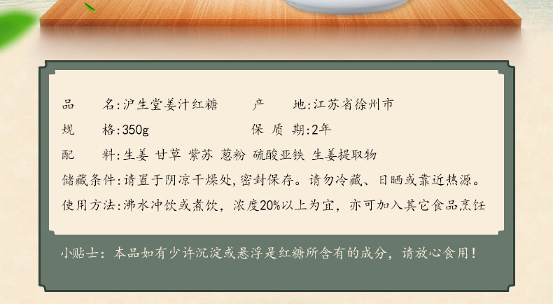沪生堂手工红糖姜汁红糖土红糖高温熬制老红糖块350g*2袋