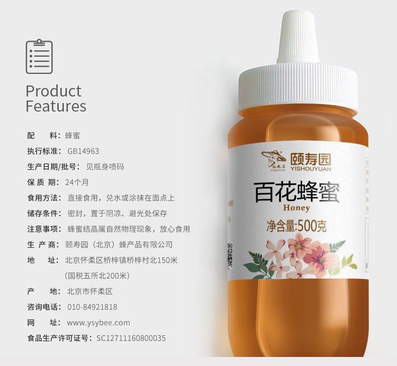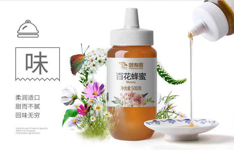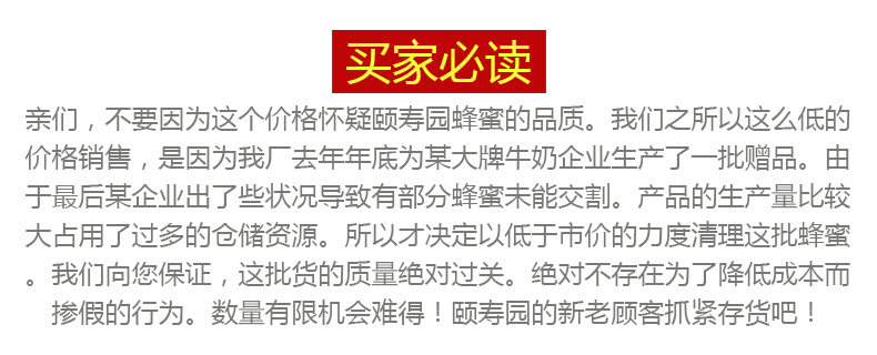 颐园牌 紫云英蜂蜜480g/瓶 玻璃瓶专利瓶口设计