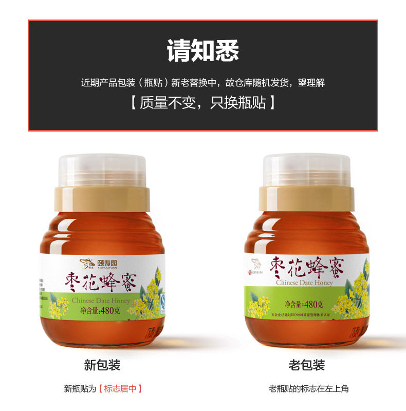 颐园牌 紫云英蜂蜜480g/瓶 玻璃瓶专利瓶口设计