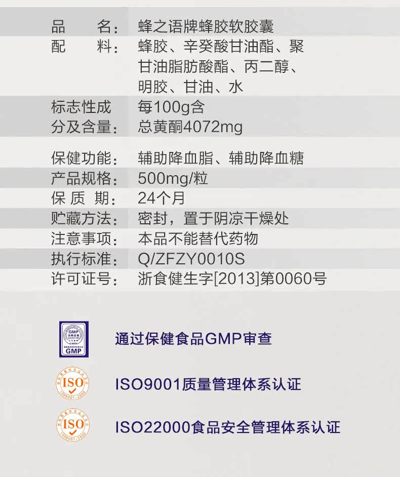 蜂之语牌皇浆蜂胶粉胶囊 250mg/粒*180粒提高免疫抗疲劳
