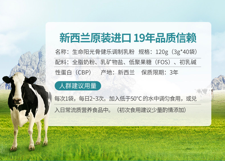 新西兰原装进口生命阳光牛初乳粉 益生元+免疫力球蛋白粉营养品