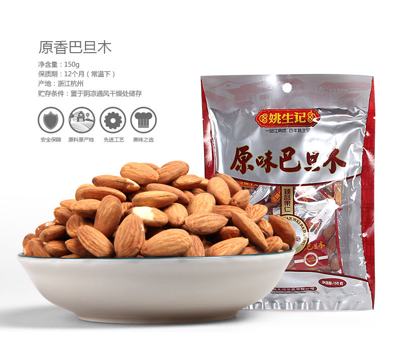 【姚生记 原香巴旦木120gX3】手剥扁桃仁坚果干果零食品炒货新货