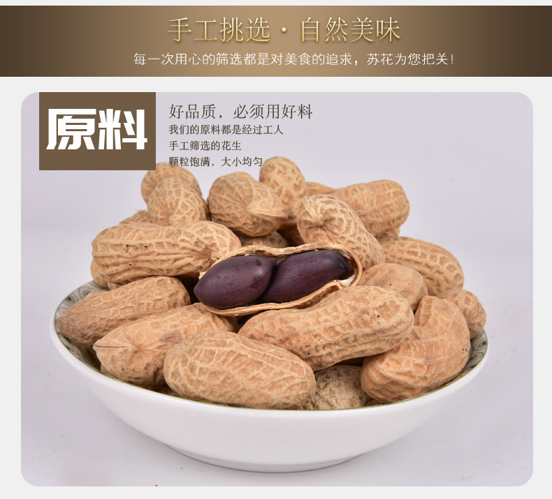 苏花原味花生500g*3袋装 原味炒花生带壳炒熟花生坚果零食炒货