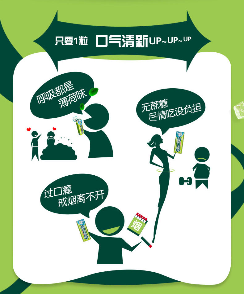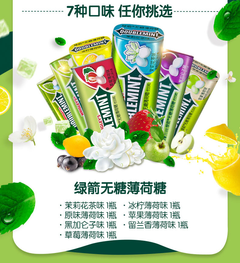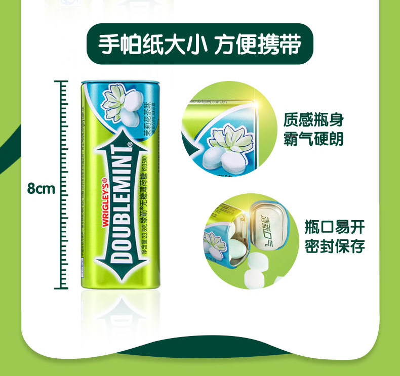 绿箭无糖薄荷味口香糖约20粒*4瓶装清新口气休闲零食糖果包邮