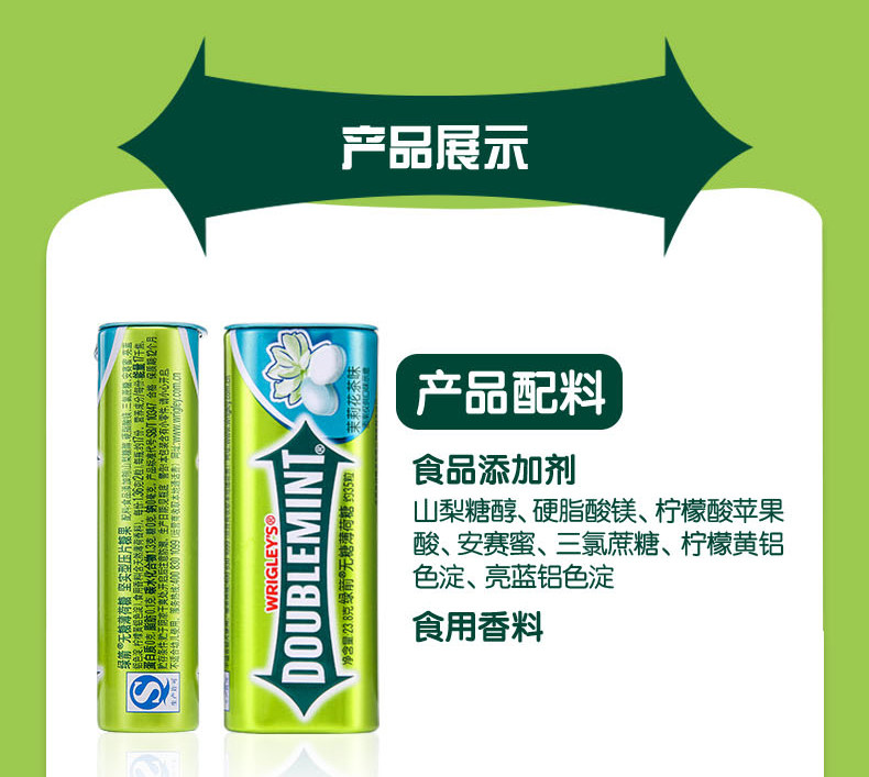 益达无糖口香糖木糖醇约40粒装56克清新口气洁齿护牙薄荷味糖果