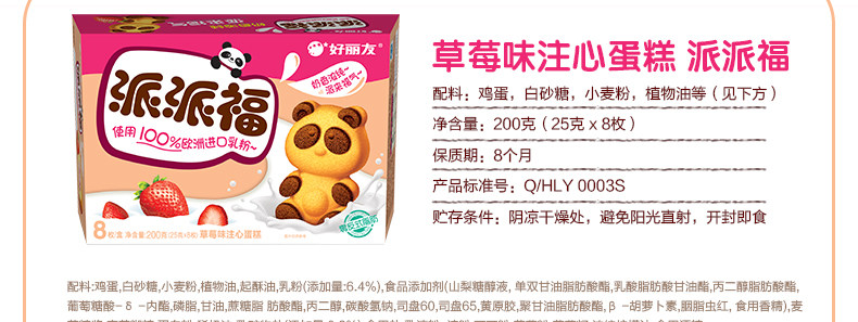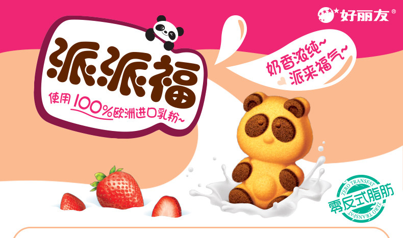 好丽友派派福草莓牛奶味8枚200g 熊猫造型休闲零食点心夹心蛋糕