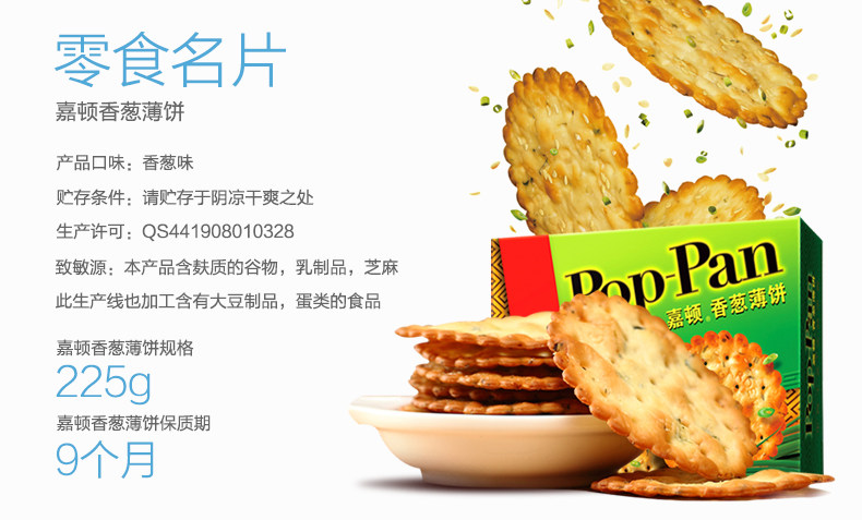 Garden/嘉顿香葱味薄饼225g 办公室早餐野餐休闲下午茶零食小吃