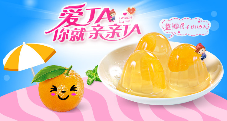 亲亲桔子果肉果冻布丁新鲜果肉休闲零食520g*2袋波萝桔子混合装