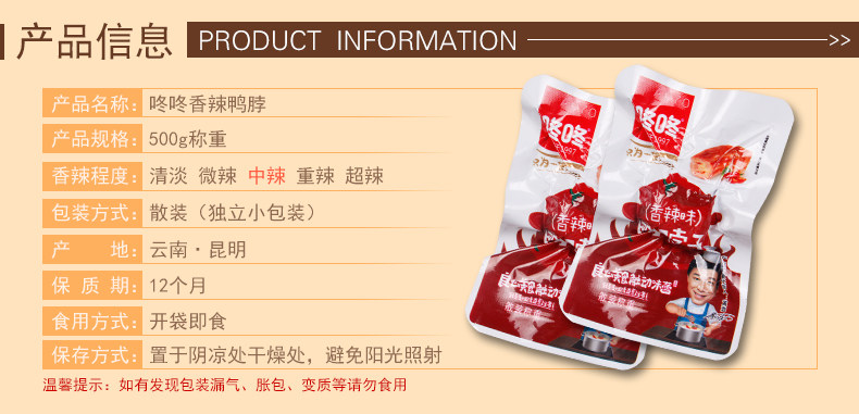 【咚咚鸭脖500g】鸭肉零食 鸭脖子 小包装 麻辣零食 卤味