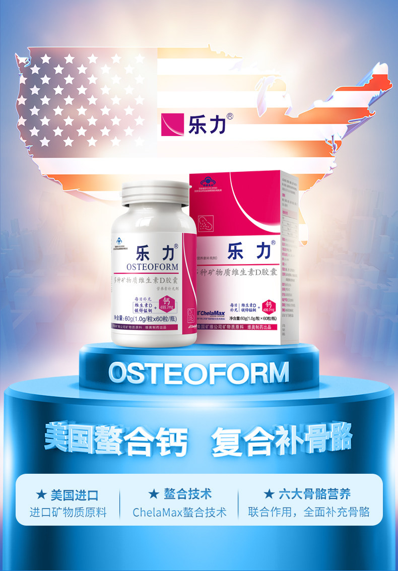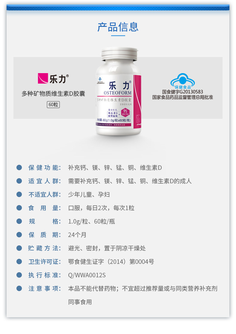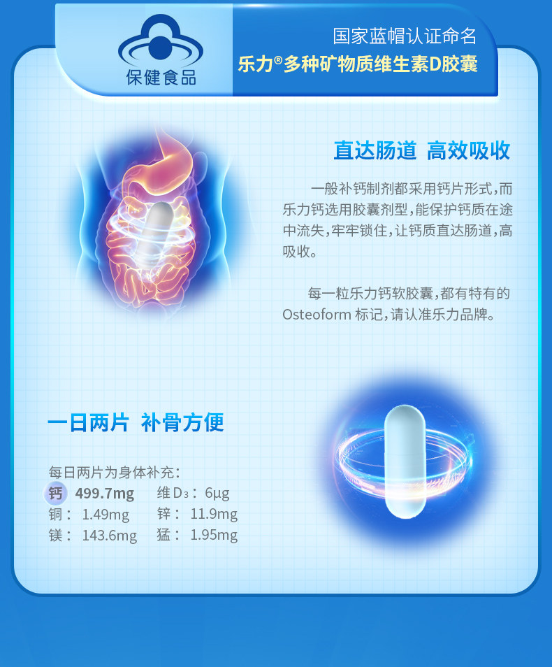 领券立减]乐力牌多种矿物质维生素D胶囊 1.0g/粒*60粒/瓶*2瓶套餐
