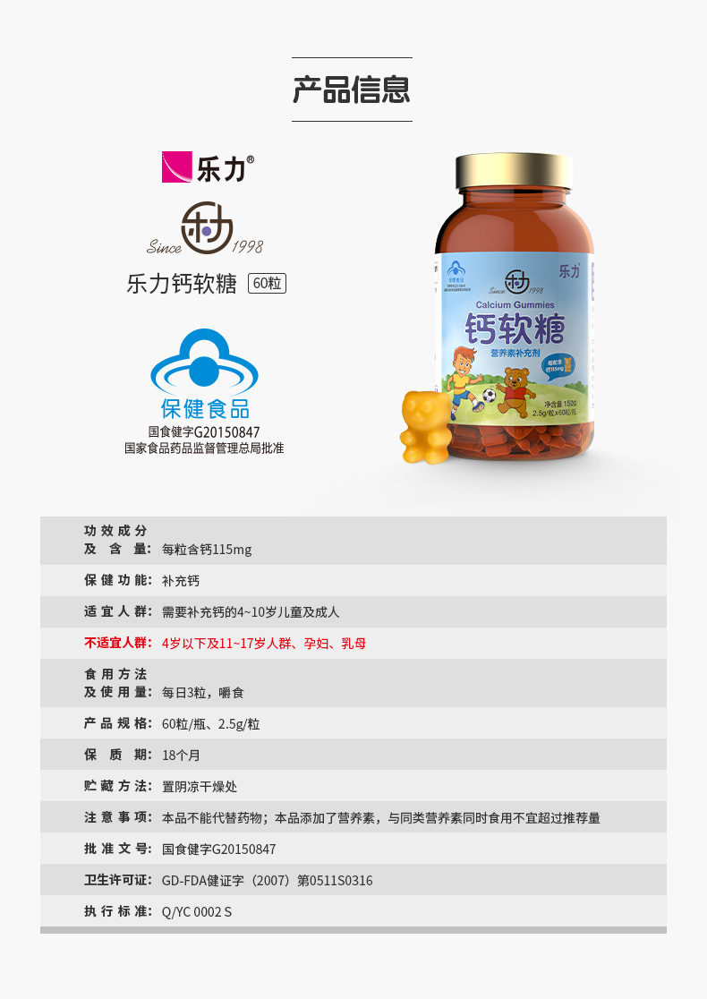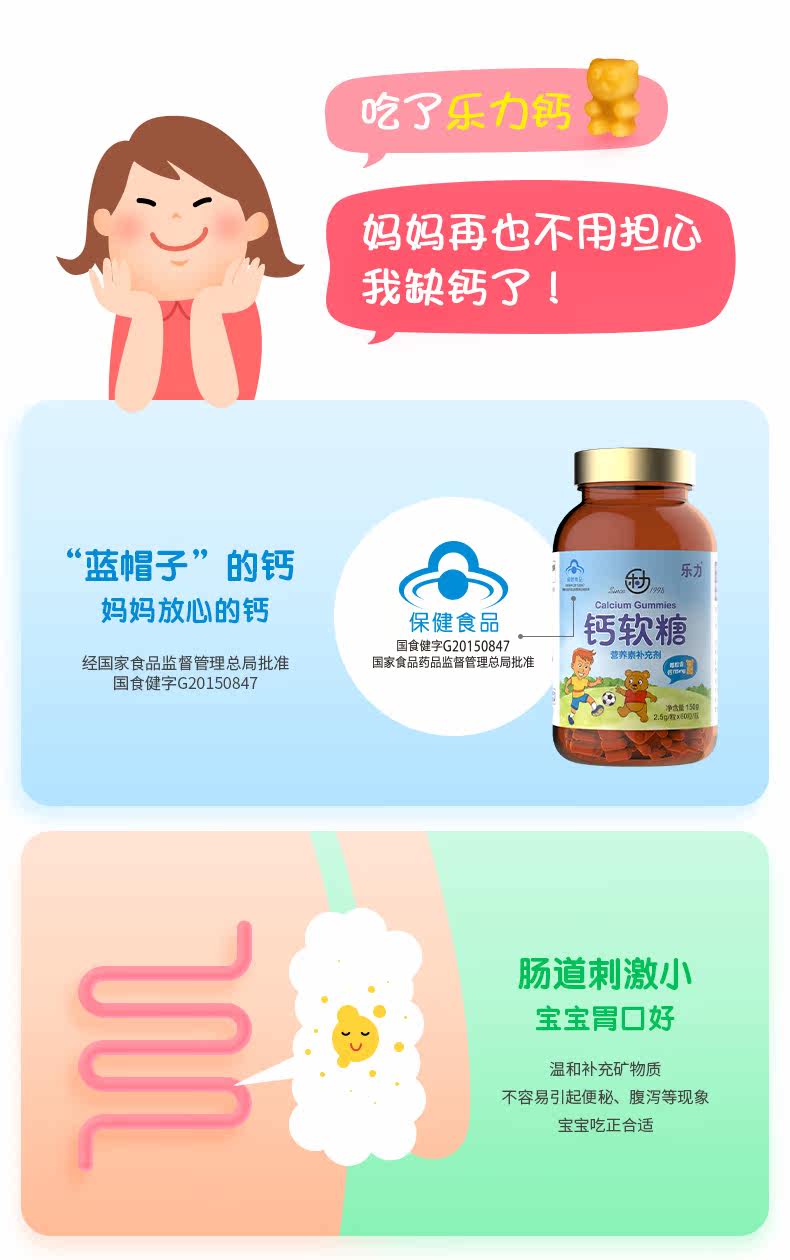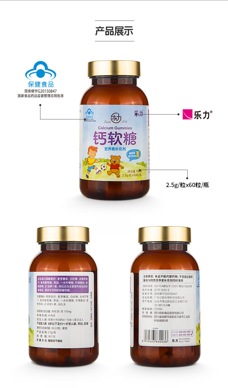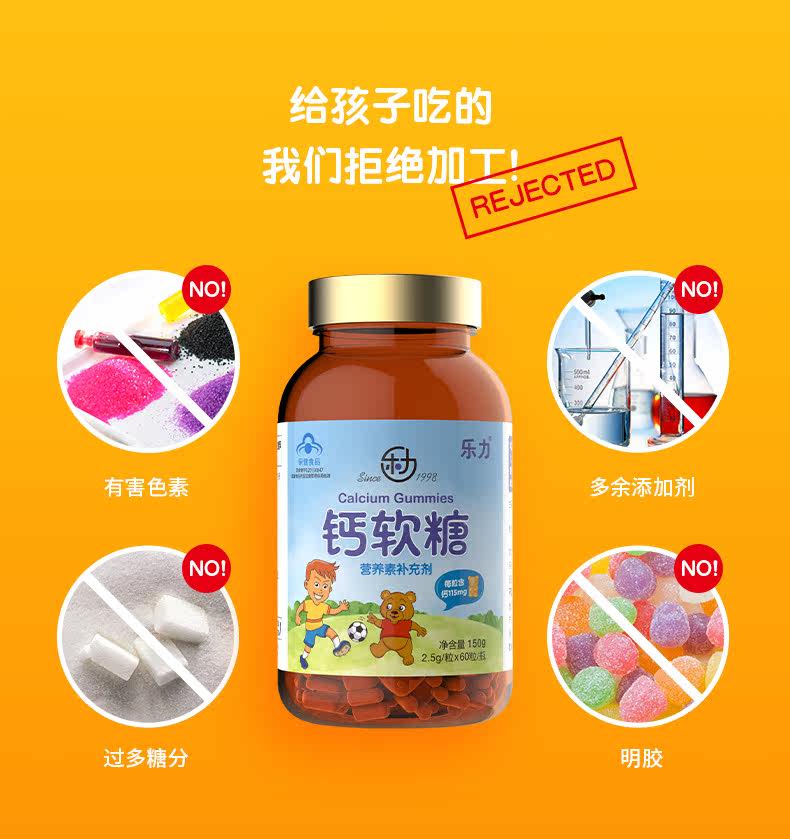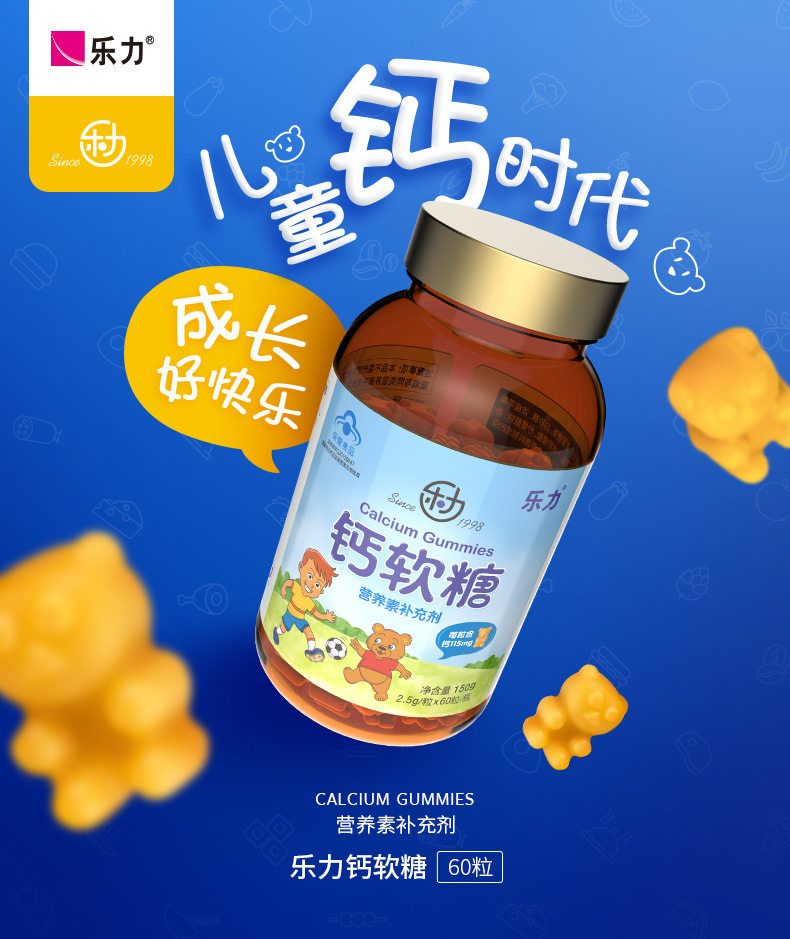 买2送牛初乳]乐力 钙软糖 2.5g/粒*60粒/瓶高含量儿童成长补钙片