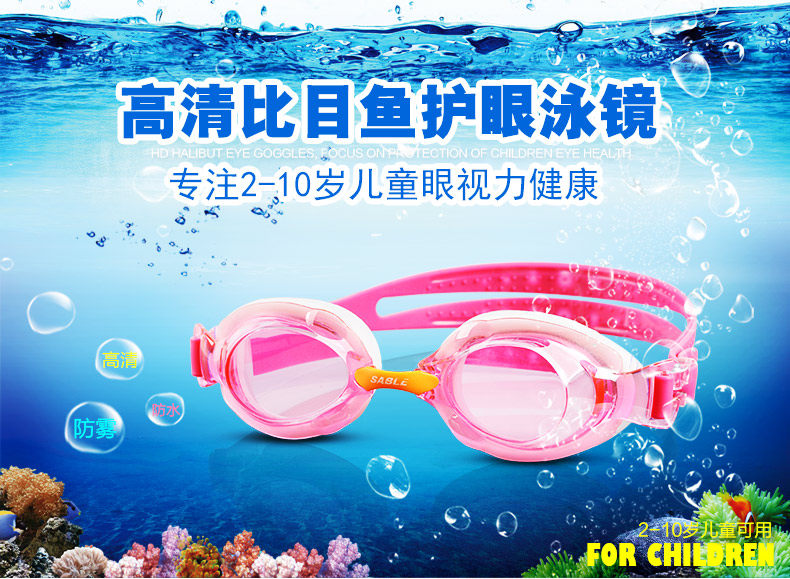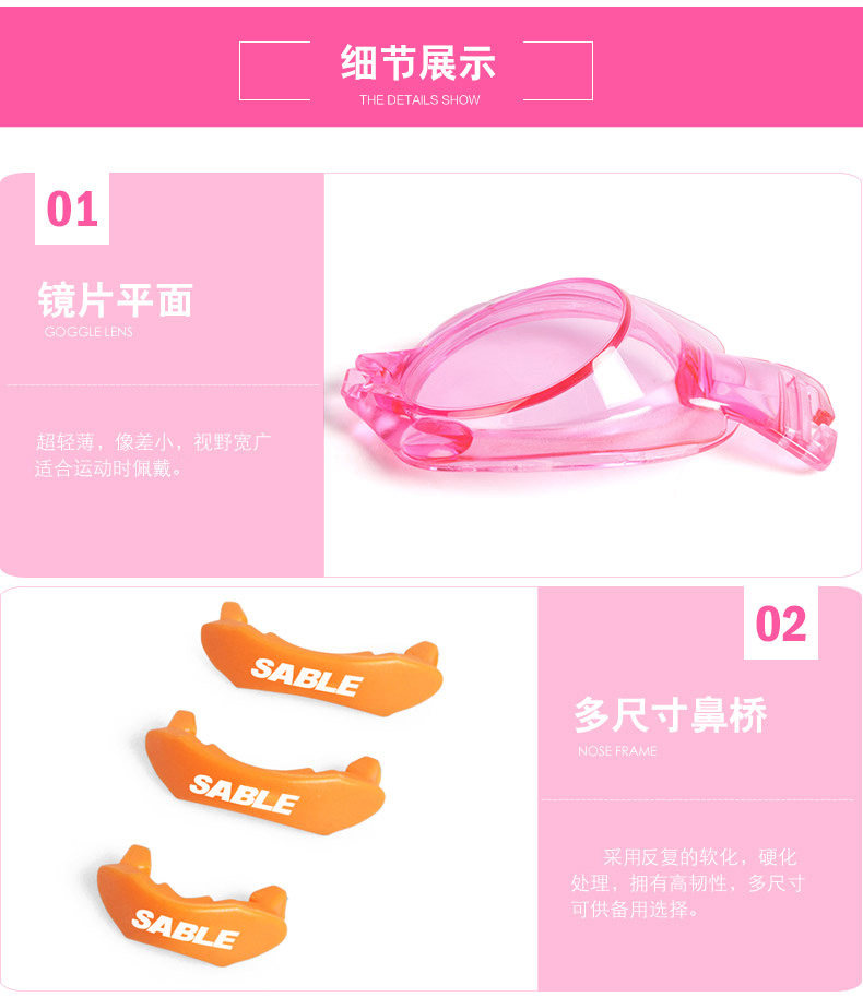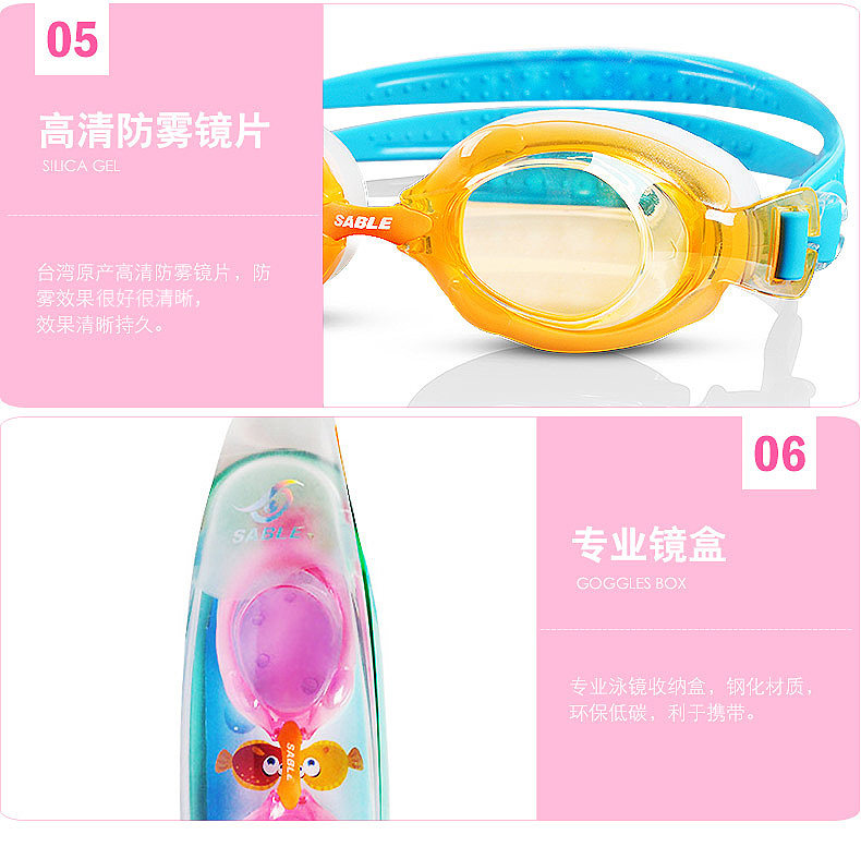 SABLE黑貂儿童平光游泳镜防雾高清游泳眼镜小孩子男女SB-981