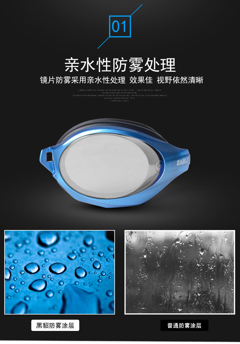 SABLE黑貂专业竞速泳镜男女舒适镀膜高清防水防雾游泳眼镜101MT