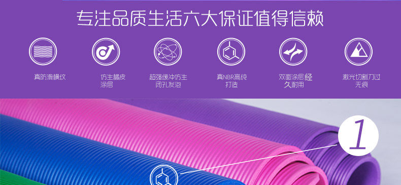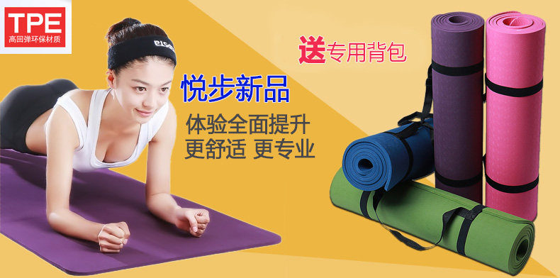 悦步瑜伽垫初学者10MM加长防滑健身垫子男女士加厚加宽无味三件套