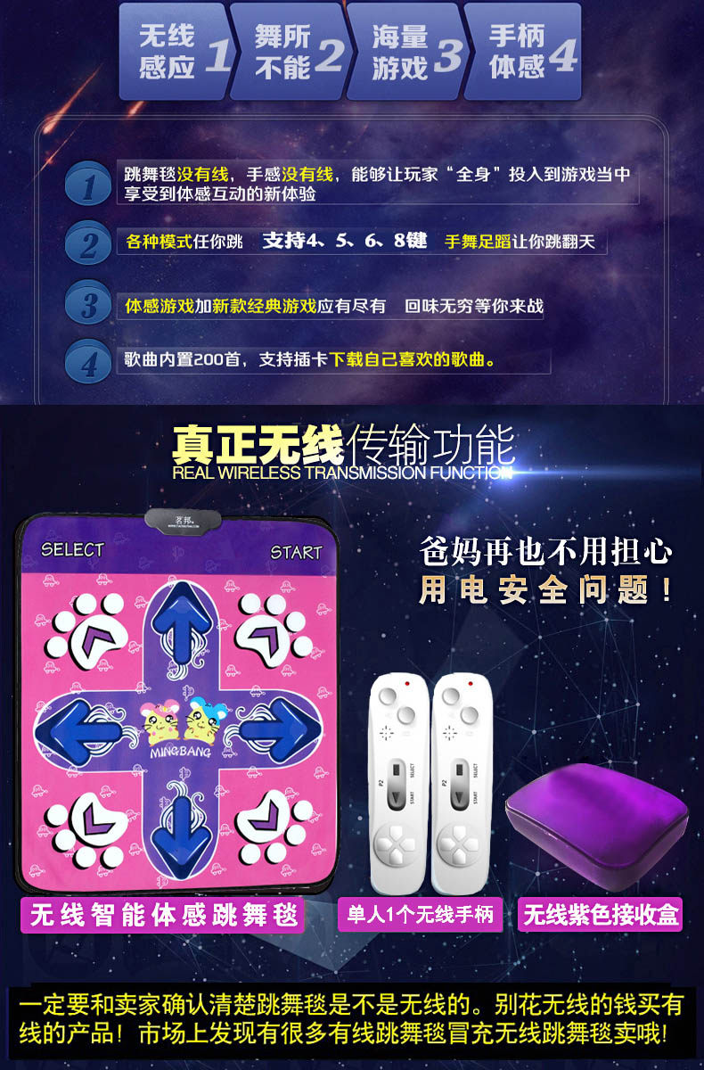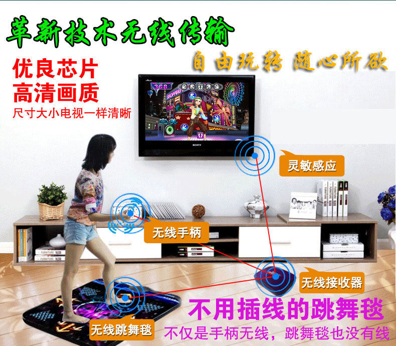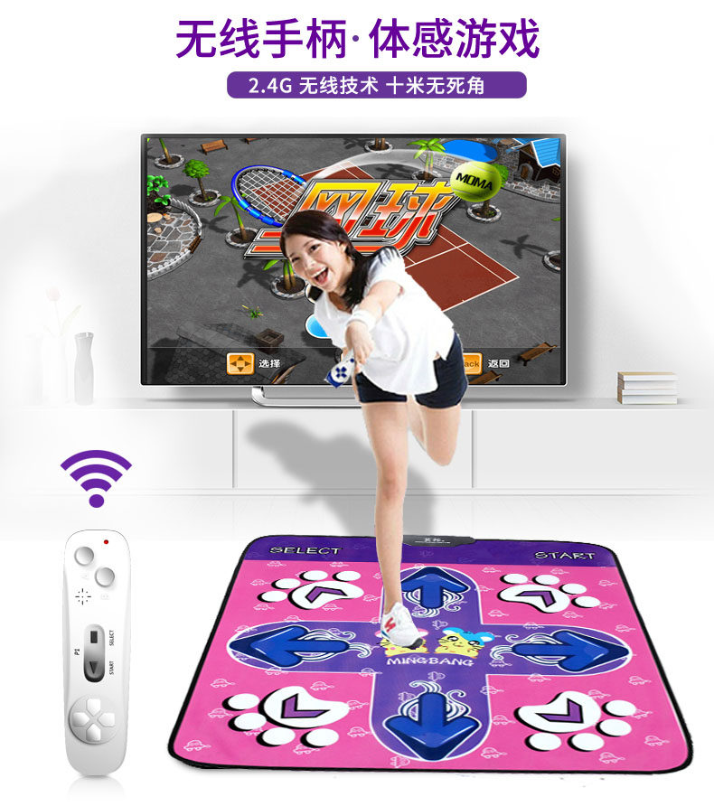 茗邦无线跳舞毯单人 电视接口电脑两用 加厚减肥瘦身体感跳舞机