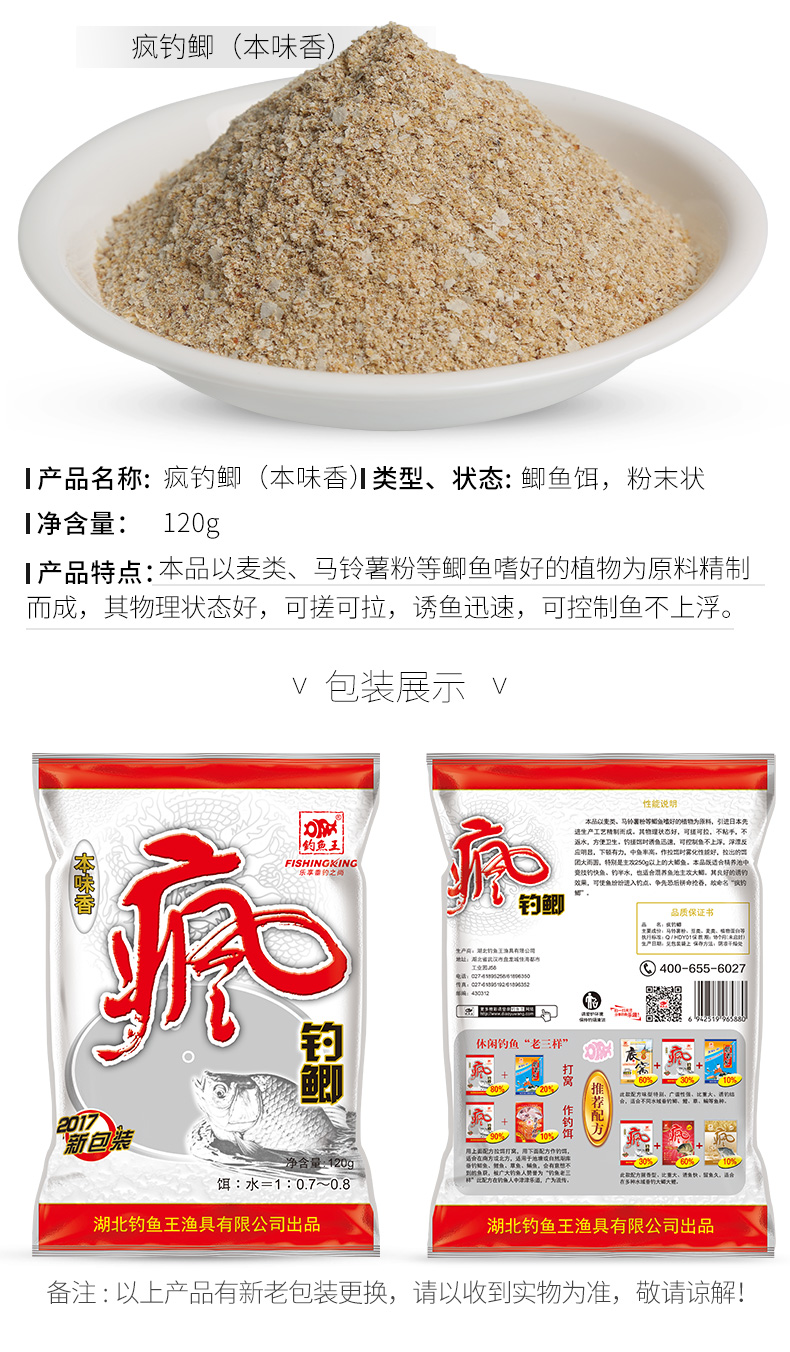鱼饵钓饵钓鱼王渔具用品疯钓鲫本味香通杀青草鲤鳊鲫鱼野钓饵料春