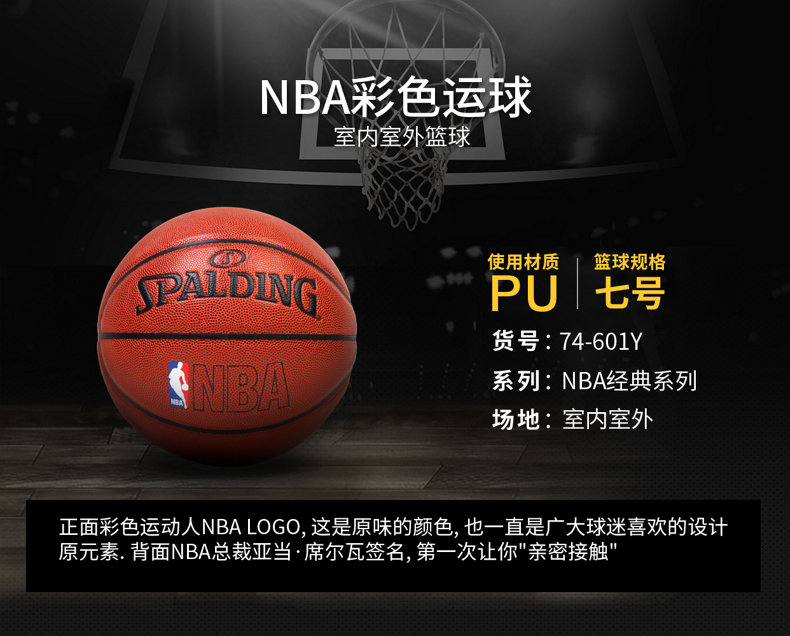 SPALDING官方旗舰店NBA场地争王室内室外PU皮篮球74-105