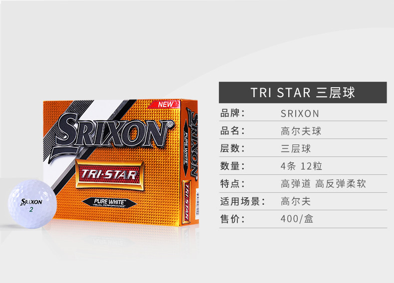 SRIXON 史力胜 高尔夫球 TRI STAR 三层球 职业款下场比赛球