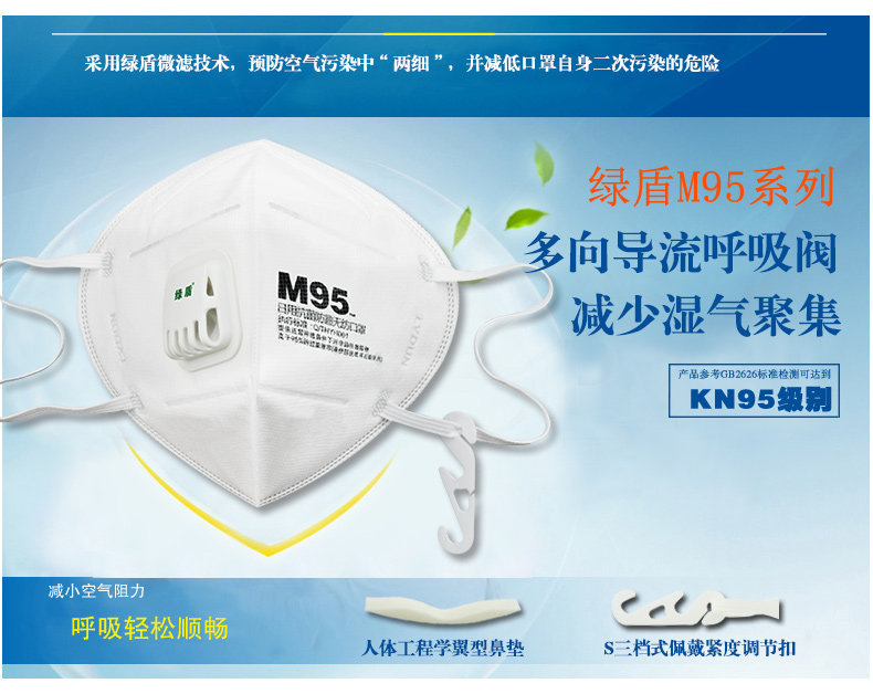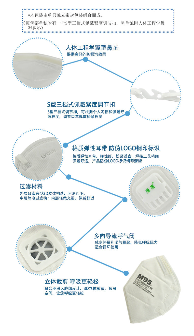 绿盾防尘口罩M95防雾霾pm2.5防工业粉尘打磨呼吸阀透气一次性男女