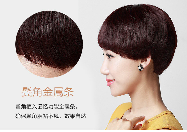 > 海森林假发女短发时尚年轻可爱蘑菇头假发混合发逼真头套手织假发