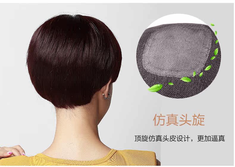 海森林假发女短发时尚年轻可爱蘑菇头假发混合发逼真头套手织假发