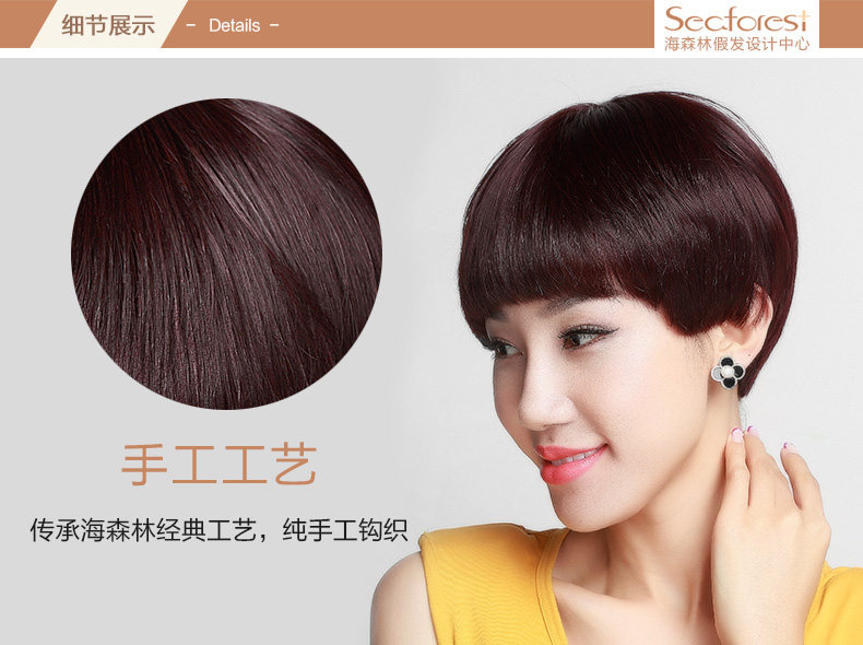 以下是海森林假发女短发时尚年轻可爱蘑菇头假发混合发逼真头套手织假发的详细说明,厂家介绍,求购联系信息,最终解释权归青岛海森林时尚发制品有限公司所有