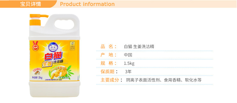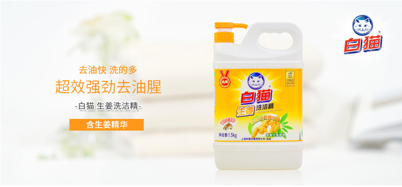 白猫生姜洗洁精超强去油腥去异味不伤手大桶装1.5kg