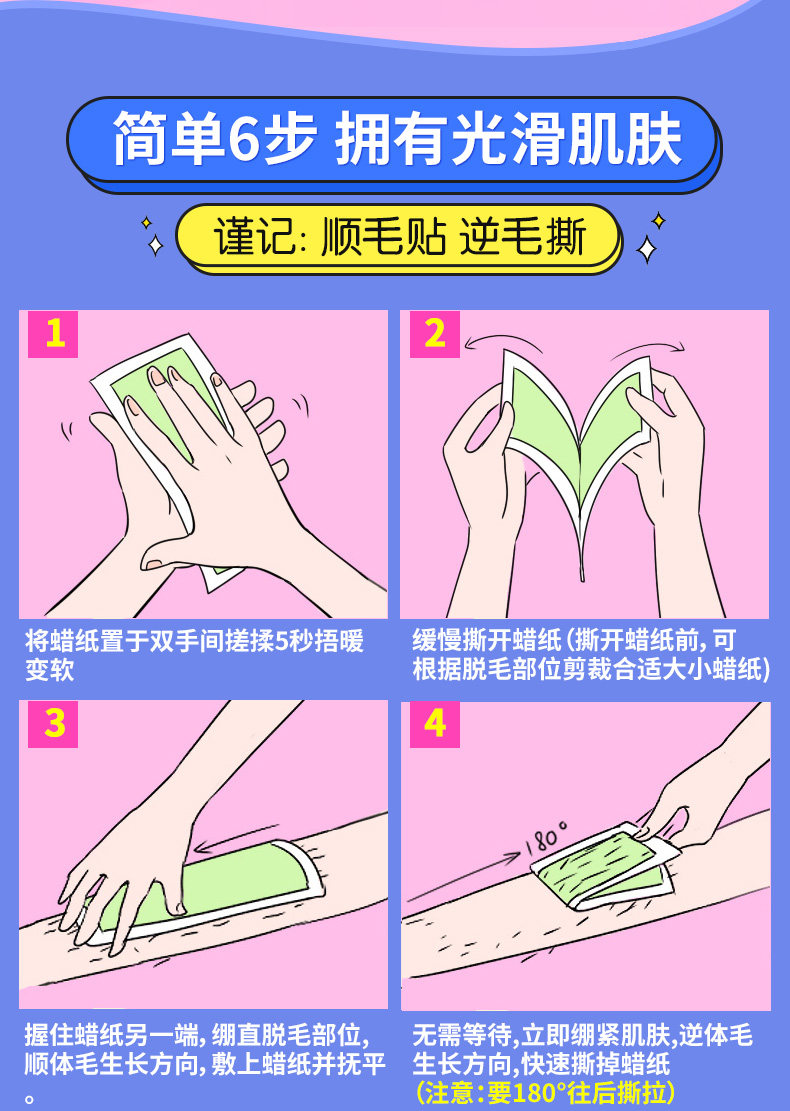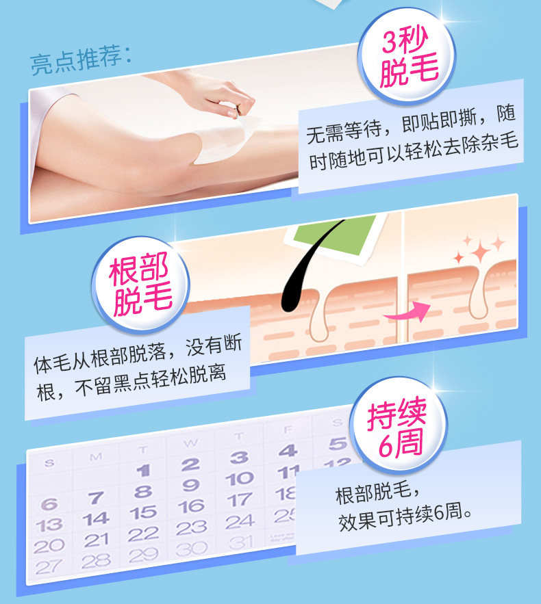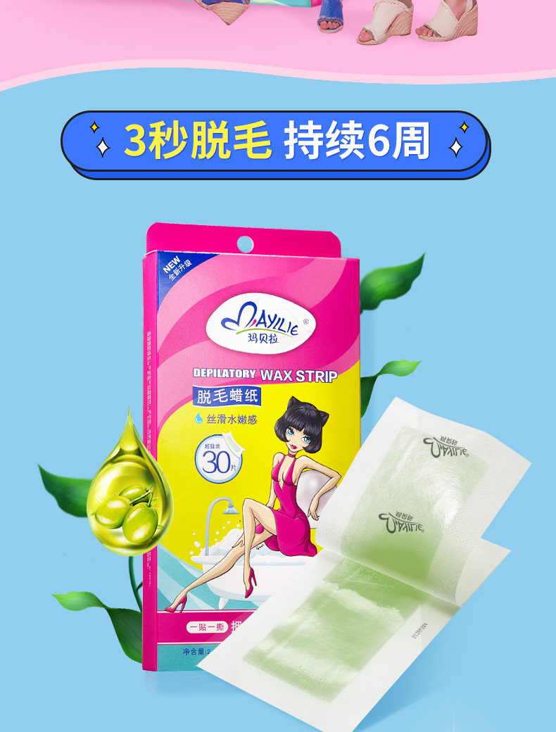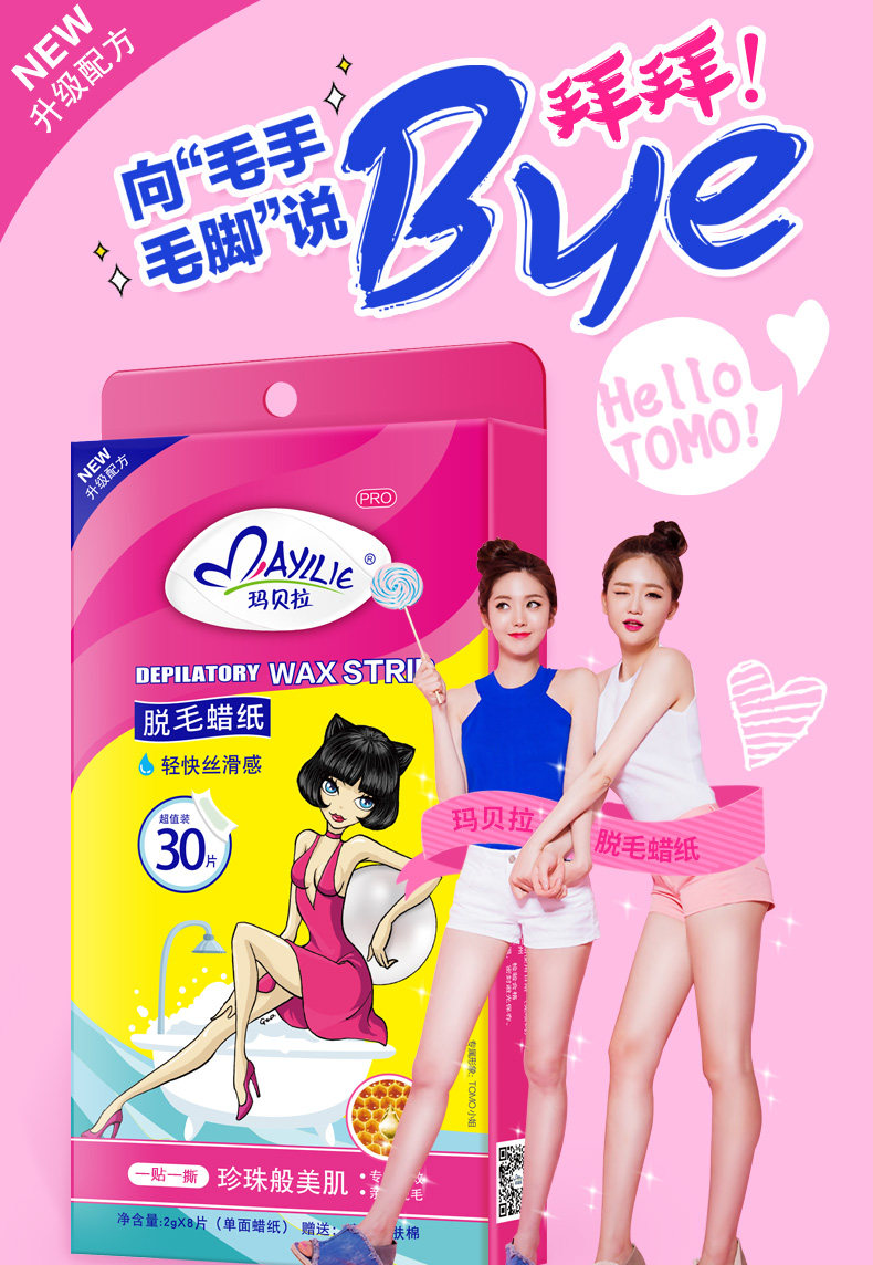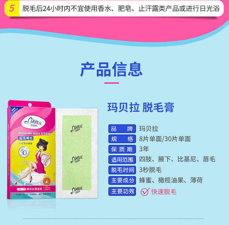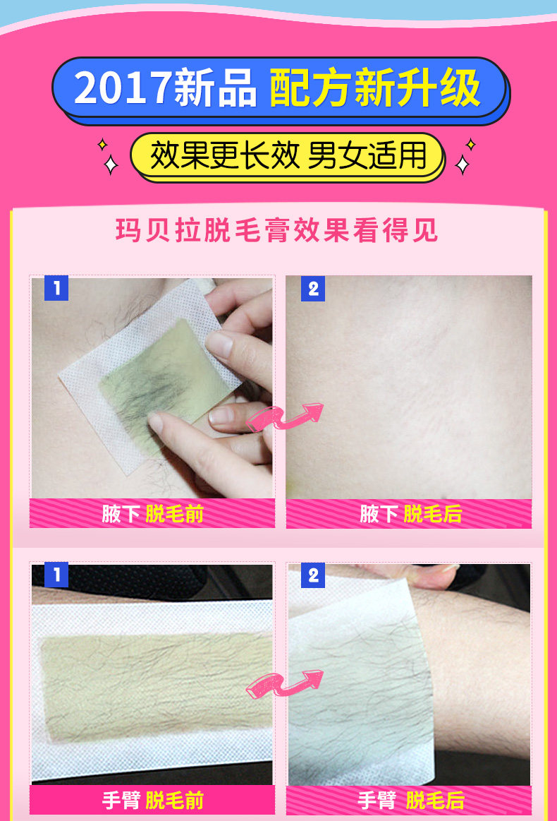 玛贝拉双面脱毛蜡纸蜜蜡纸套装 8单片全身腋下腿毛唇毛脱毛膏