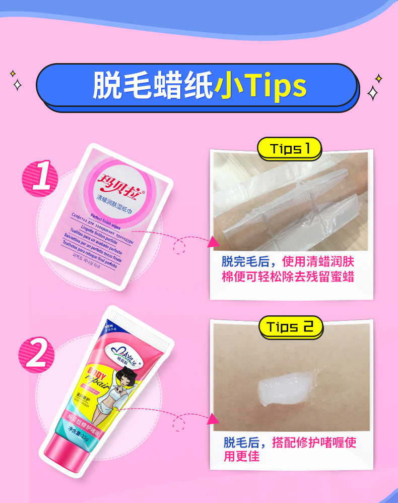 玛贝拉 蜡纸用清蜡润肤棉除蜡湿巾四肢面部唇毛腿毛手臂比基尼