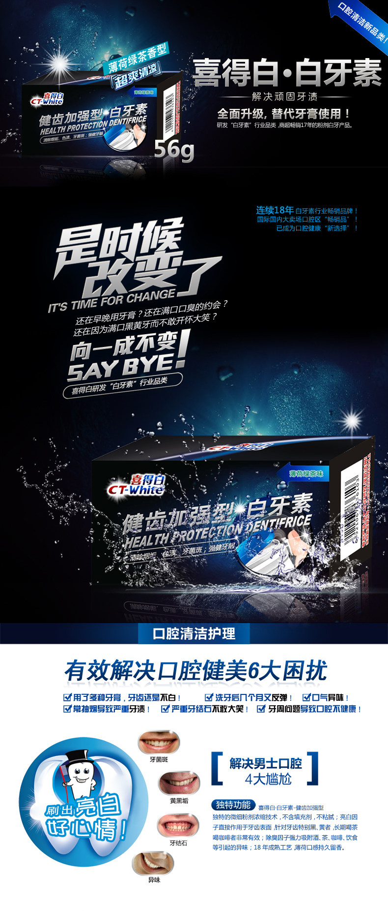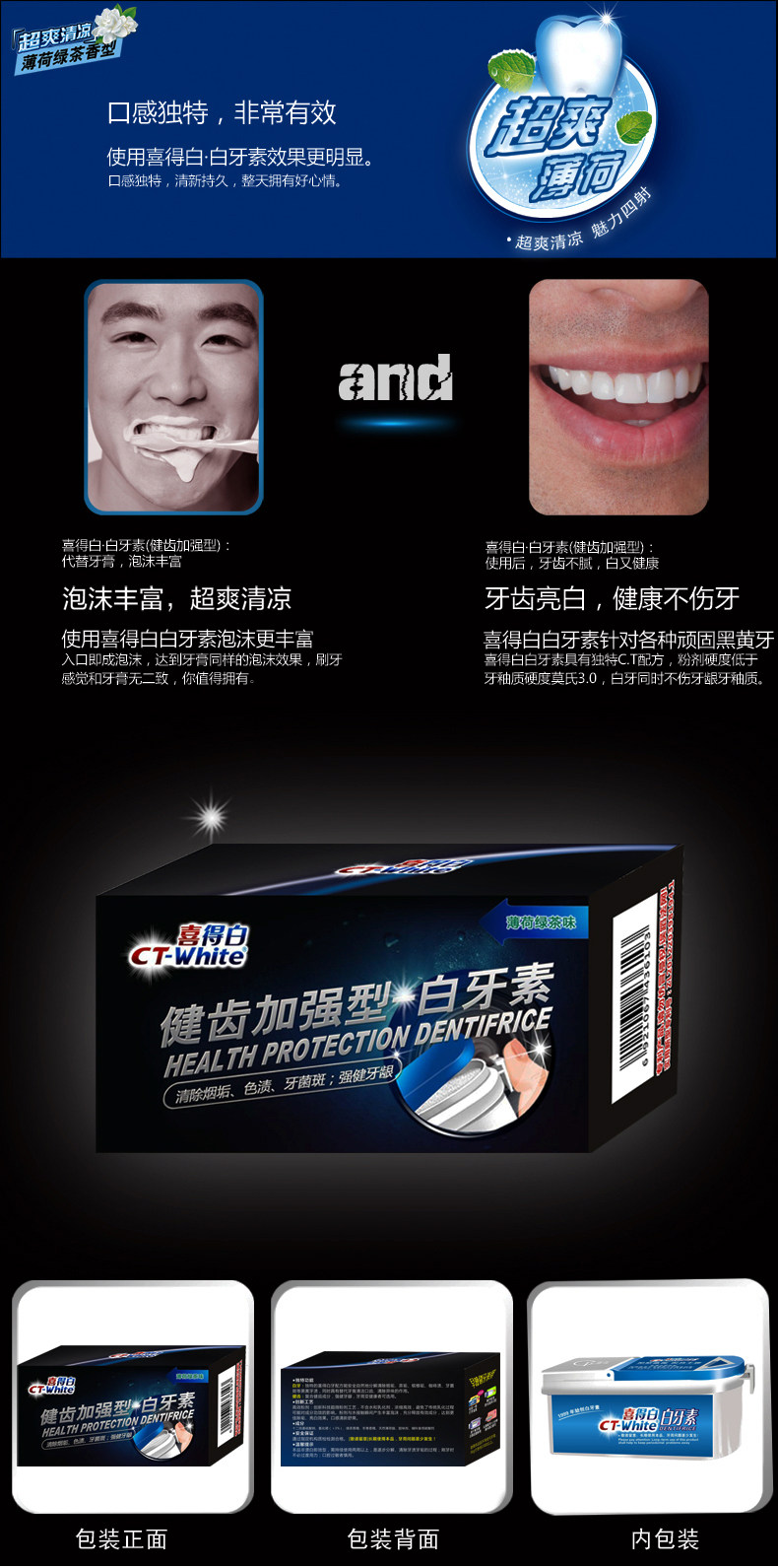 以下是喜得白白牙素洗牙粉56g非牙齿美白神器去牙渍烟渍黄牙结石牙斑净的详细说明,厂家介绍,求购联系信息,最终解释权归丹桂.欧荷白(重庆)生化科技有限公司所有