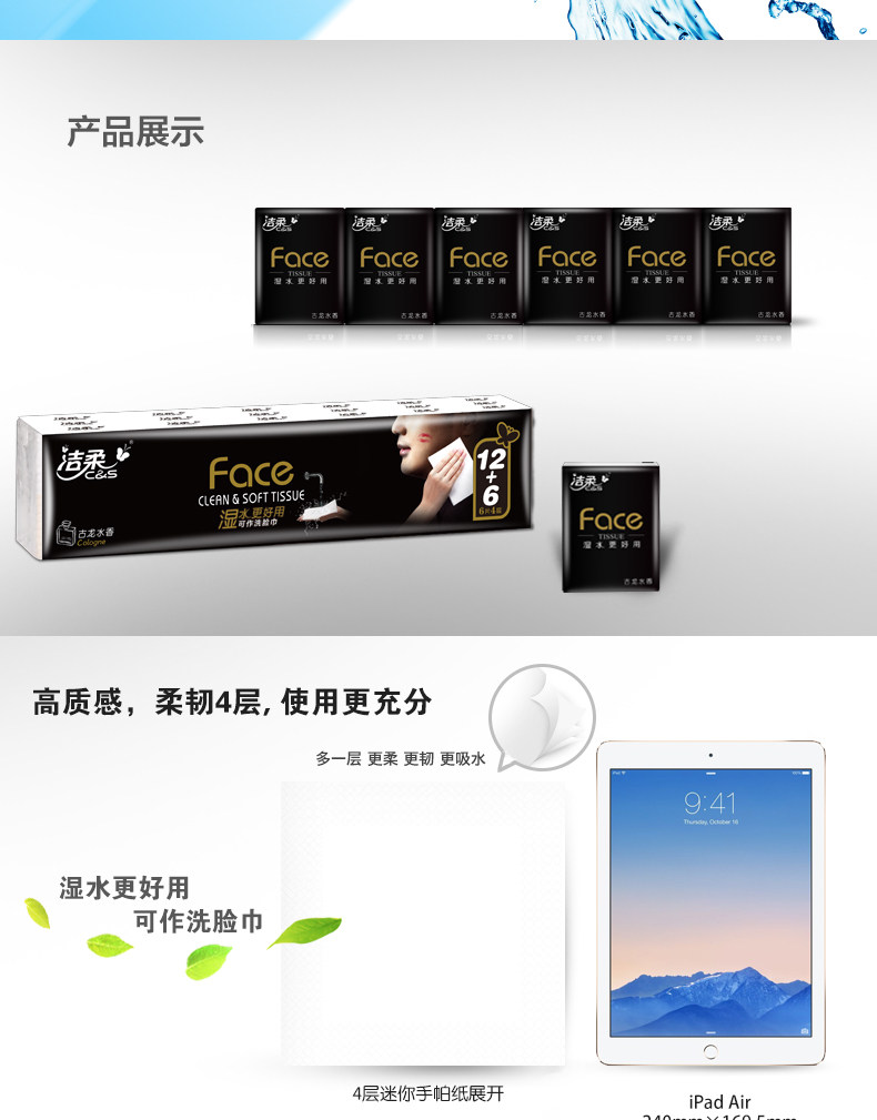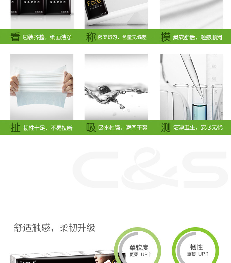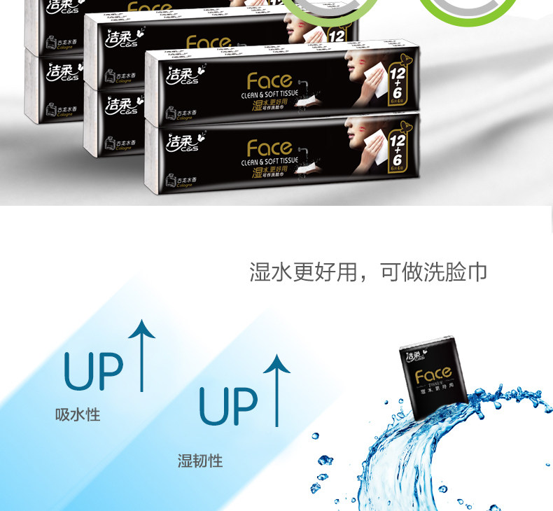 洁柔纸巾C&S无香3层高端抽纸套装18包,更柔、更韧、更厚