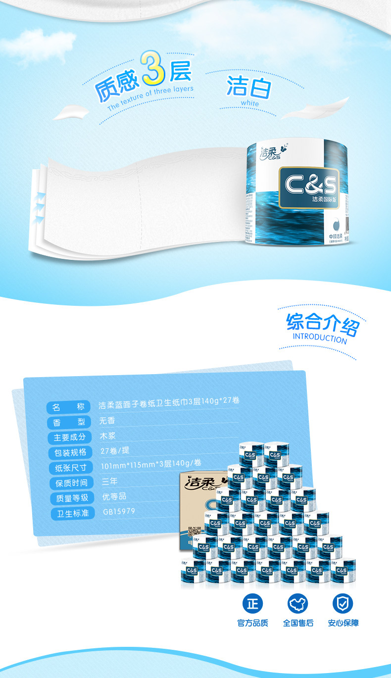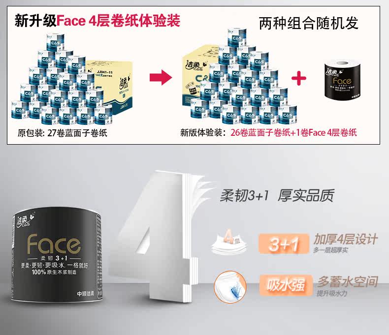 洁柔纸巾C&S无香3层高端抽纸套装18包,更柔、更韧、更厚