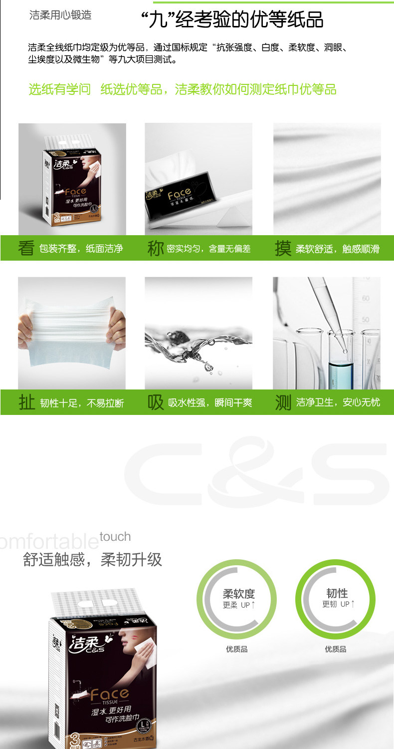 洁柔纸巾C&S无香3层高端抽纸套装18包,更柔、更韧、更厚