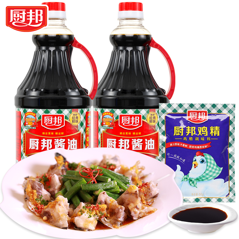 厨邦味极鲜酱油1.63L*2送鸡精200g*1黄豆酿造特级生抽美味鲜调料
