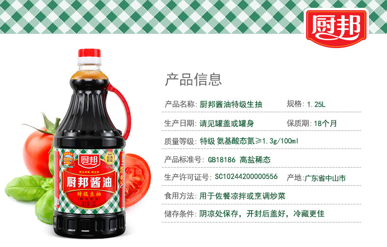 厨邦金品生抽1.25L*2瓶装酿造酱油厨帮鲜酱油厨房调味品调料
