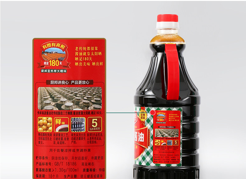 厨邦鲜酱油900ml*3罐装特级鲜味生抽调味品酿造黄豆酱油凉拌调料