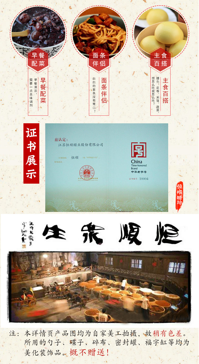 恒顺香醋三年陈580ml 调味品 蘸食 镇江特产 酿造食醋 镇江香醋