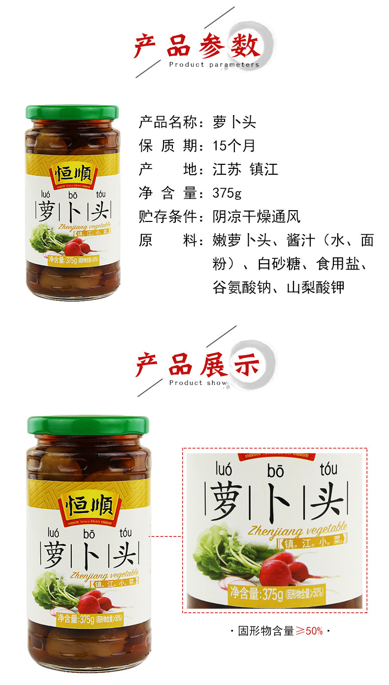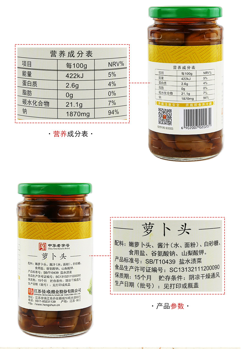 恒顺什锦菜375g 酱菜 咸菜 腌制泡菜 下饭小菜 榨菜 镇江特产