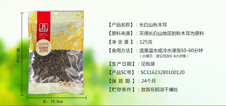维多宝秋木耳东北 椴木木耳 东北黑木耳 干货特产 125g袋装秋木耳