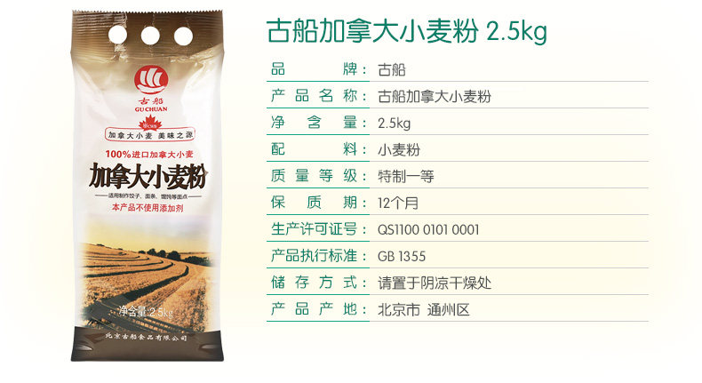古船 高筋特精粉 高筋小麦粉 多用途通用面粉 馒头花卷面条