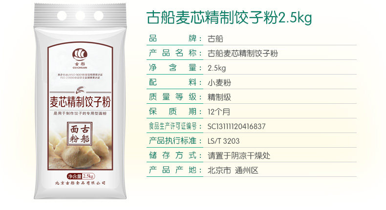 古船饺子粉 高筋面粉小麦粉 多用途通用面粉2.5kgX1袋