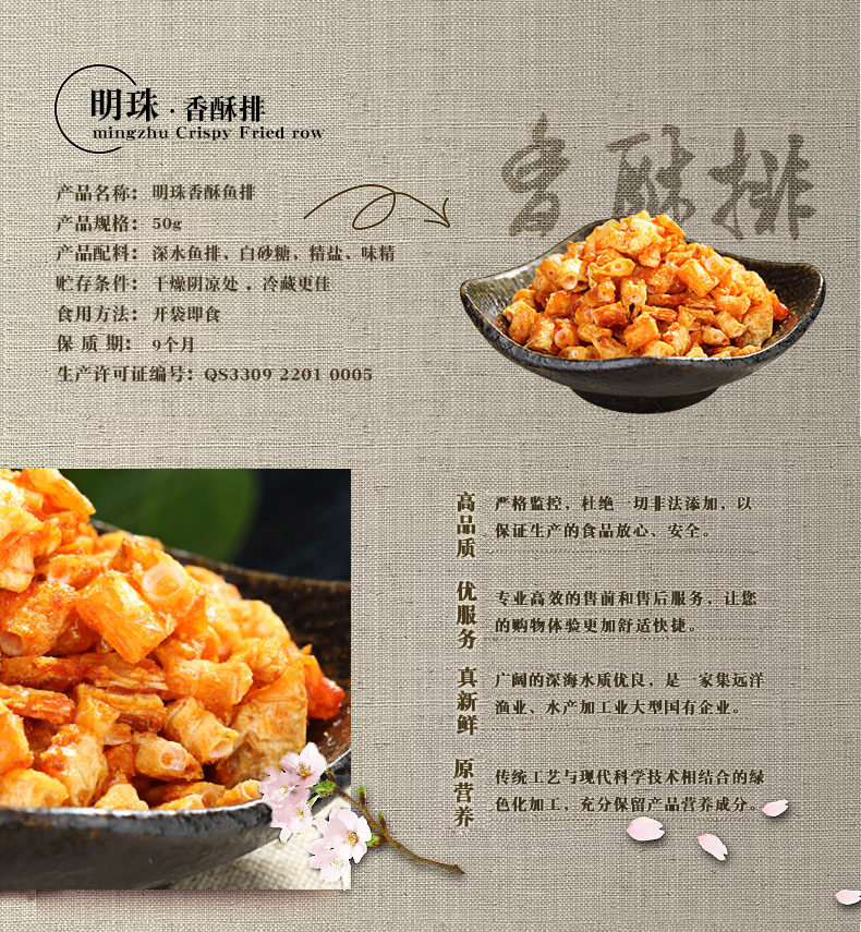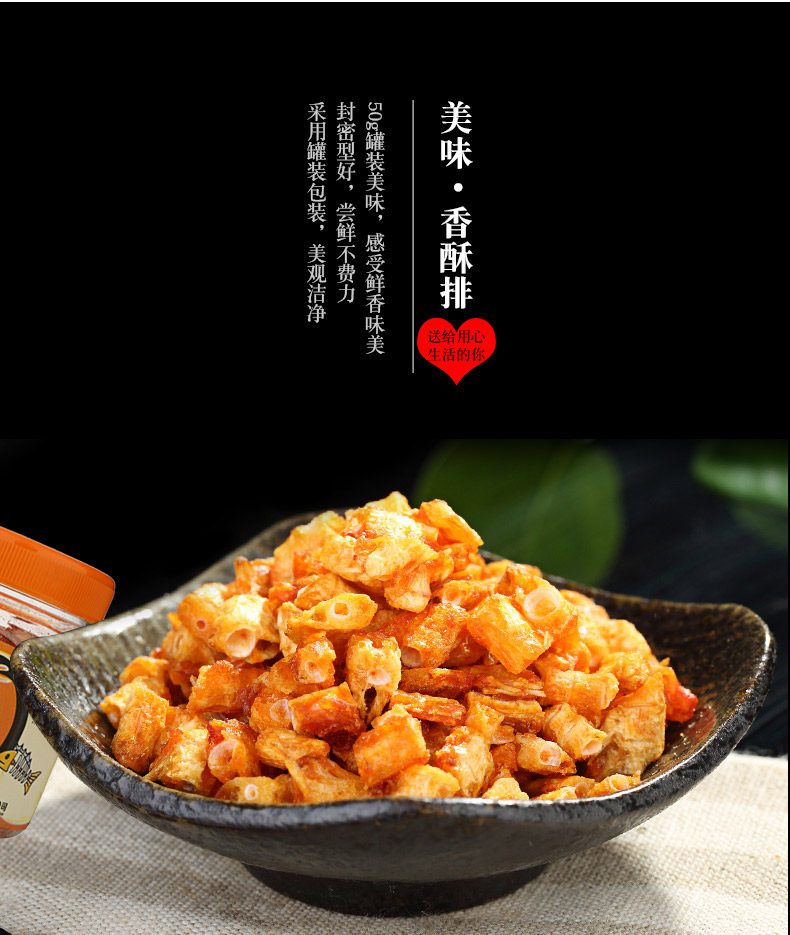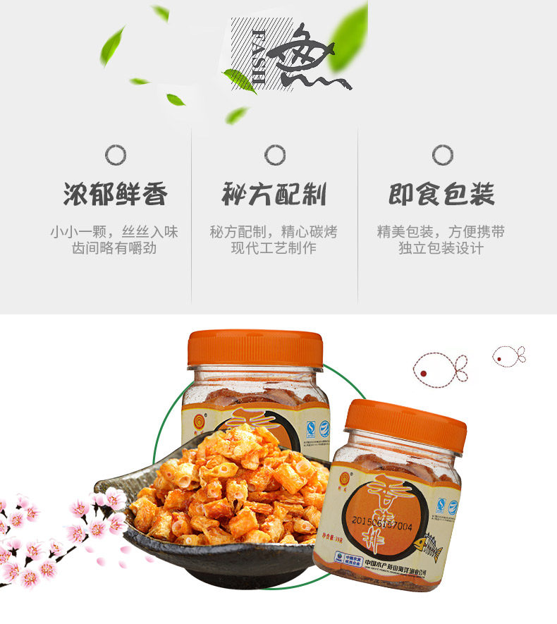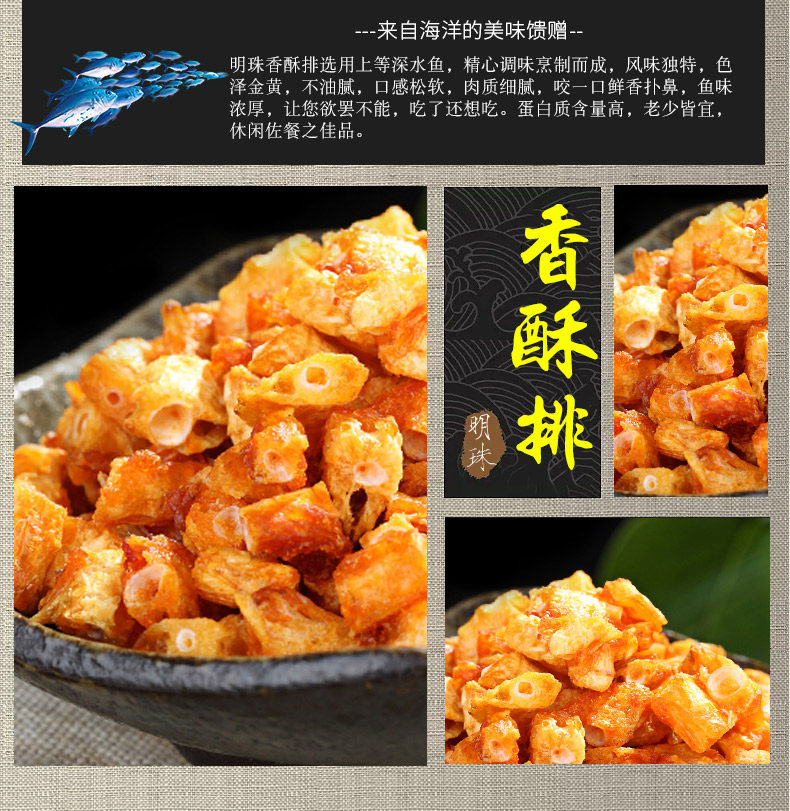 明珠 休闲零食海味小吃鱼排舟山特产海鲜原味香酥鱼骨头50克*5瓶