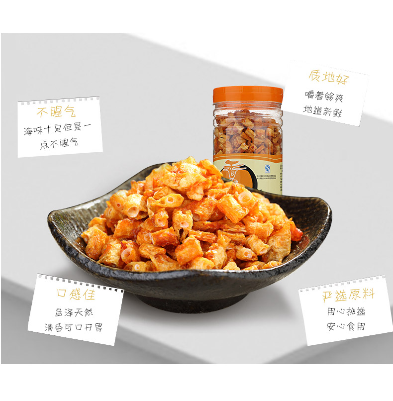 以下是【明珠】 香酥鱼骨头 办公室休闲零食即食小吃香酥鱼排168克的详细说明,厂家介绍,求购联系信息,最终解释权归中国水产舟山海洋渔业公司所有