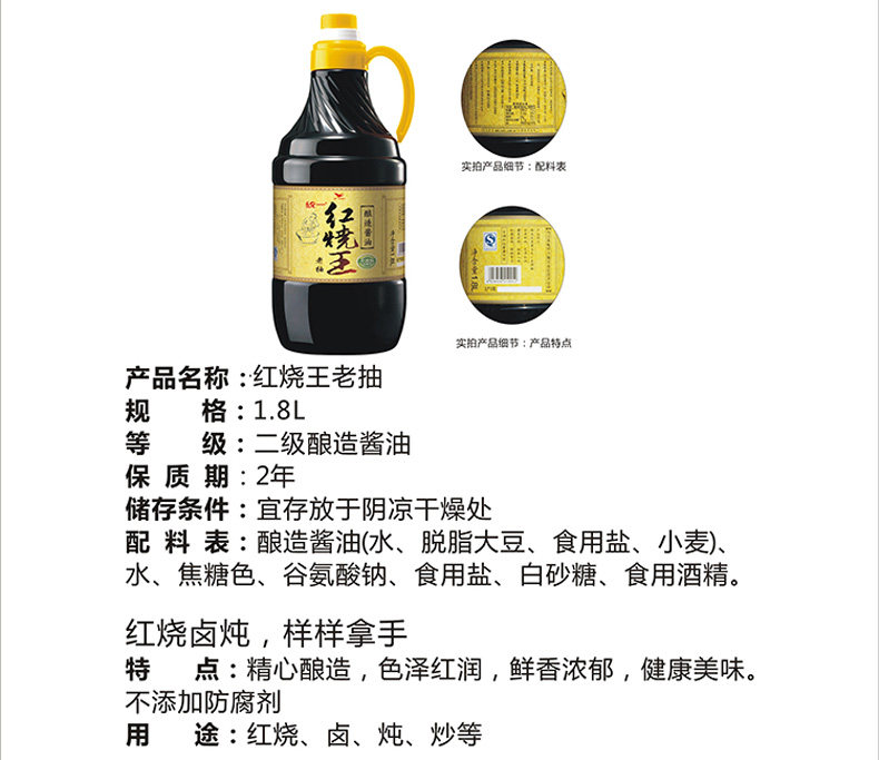 龟甲万出品酿造酱油万字统一红烧王餐厅老抽酱油1.8L包邮